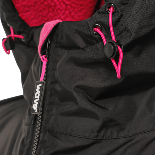 Wave Fleece-Lined Changing Robe - Black & Pink