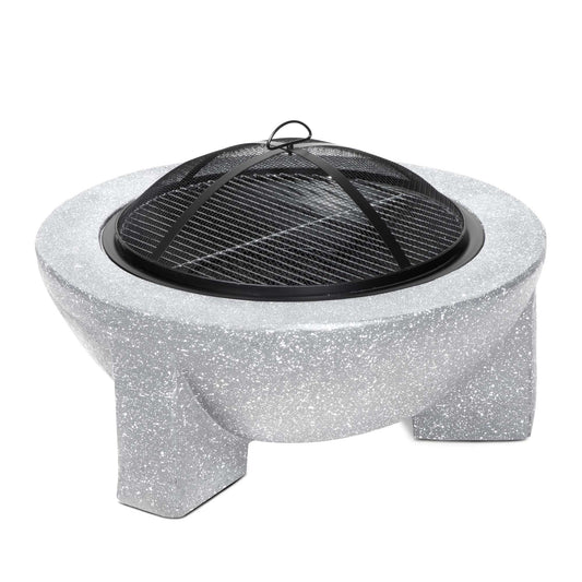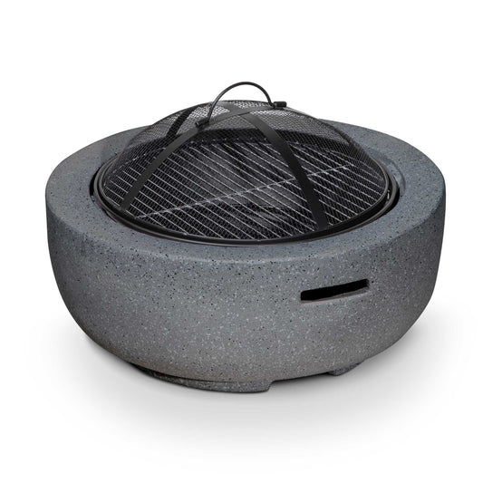 Round MgO Fire Pit with BBQ Grill, Ø75cm, Safety Mesh Screen, Dark Grey - DG191