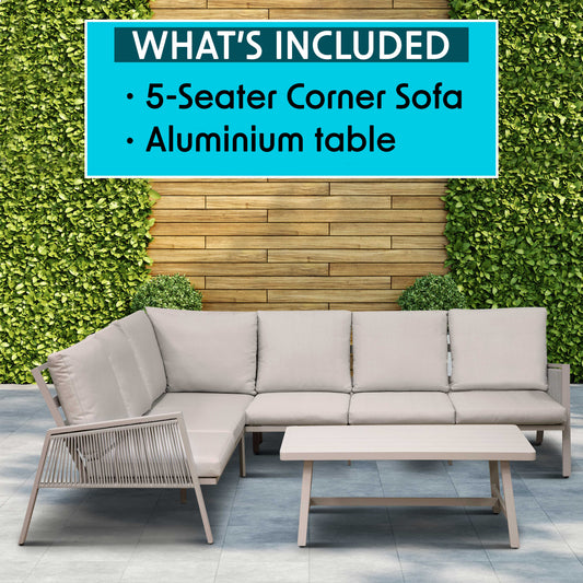 Dellonda Kyoto 5 Seater Aluminium Outdoor Corner Sofa Set