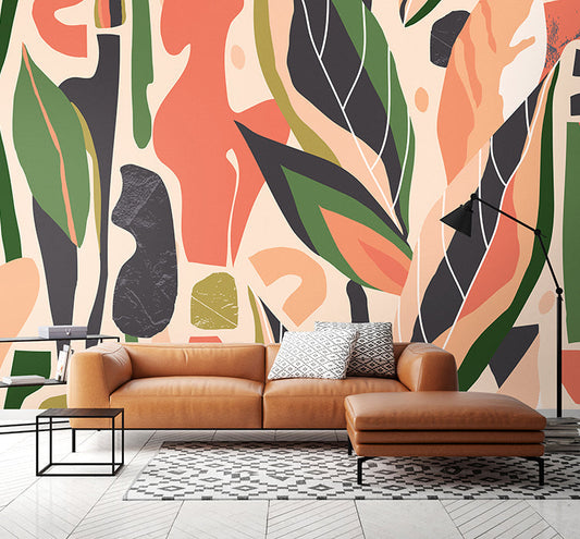 Origin Murals Abstract Leaf Shapes Orange 300cm X 240cm