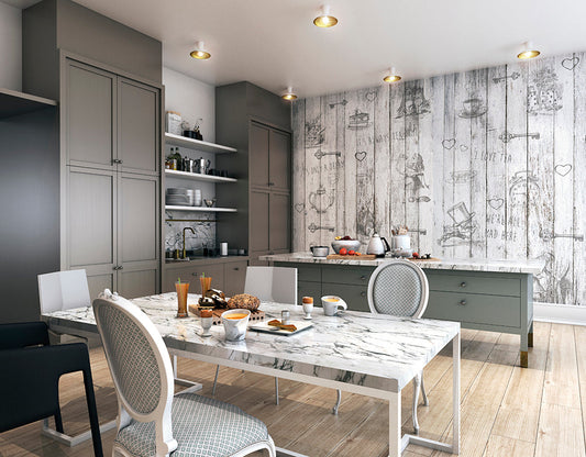 Origin Murals Alice In Wonderland Vintage Wood White 300cm X 240cm