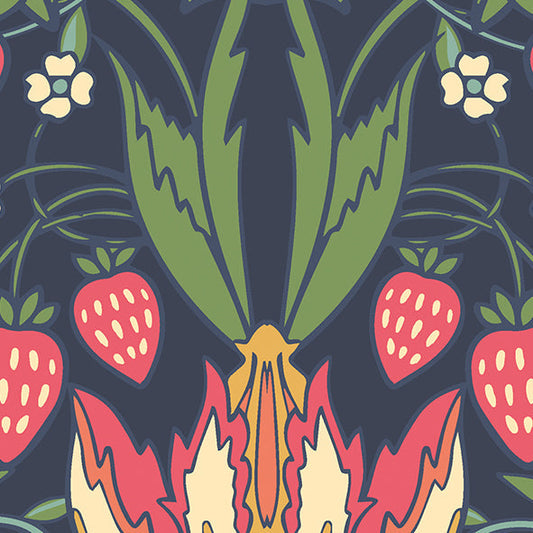 Origin Murals Birds Fruit And Foliage Navy And Coral 300cm X 240cm