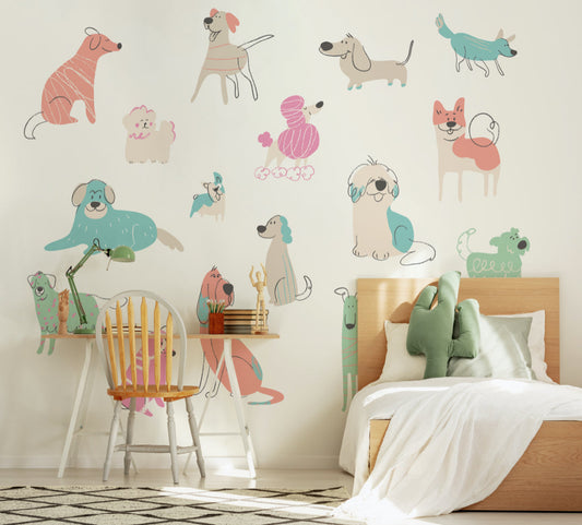 Origin Murals Happy Dogs Blush Pink 300cm X 240cm