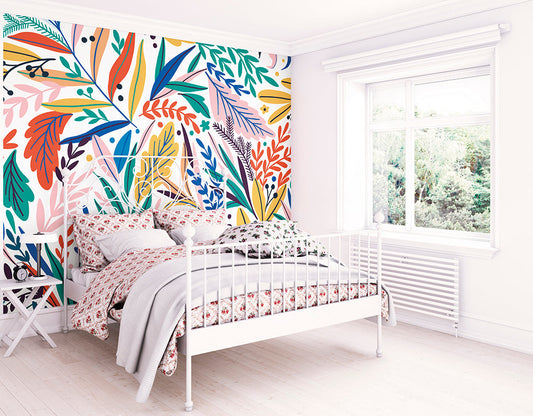 Origin Murals Patterned Leaves Multi Bright 350cm X 280cm