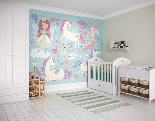 Origin Murals Princess Unicorn Blue 300cm X 240cm
