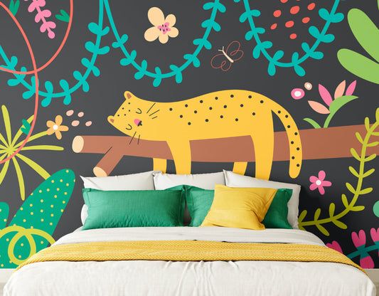 Origin Murals Sleeping Jungle Leopard Black 300cm X 240cm