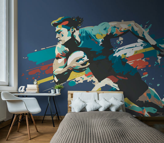 Origin Murals Rugby Player In Graphic Style Blue 350cm X 280cm