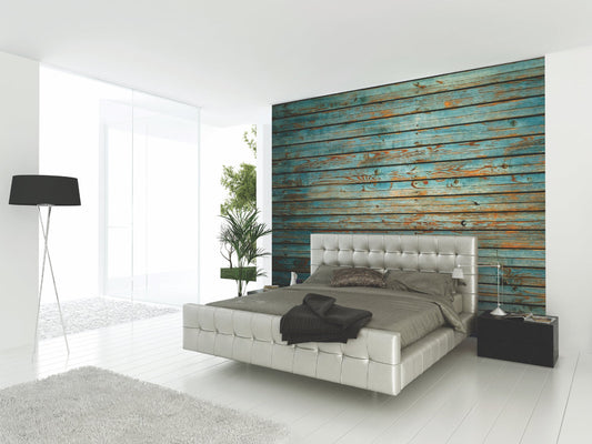 Origin Murals Rustic Wood Effect Blue 300cm X 240cm
