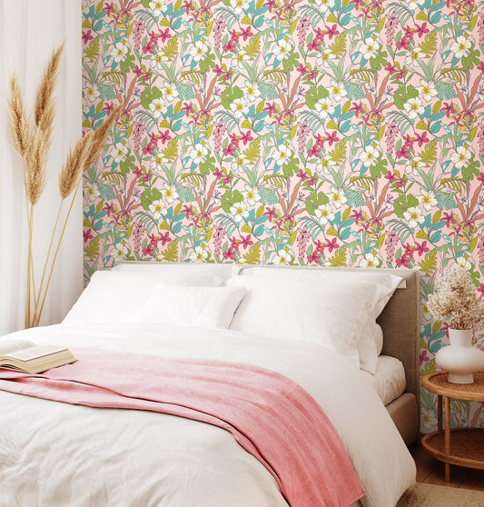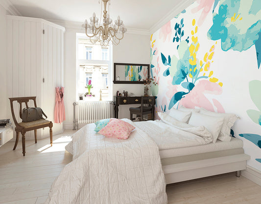 Origin Murals Graphic Flower Blush Jade 350cm X 280cm