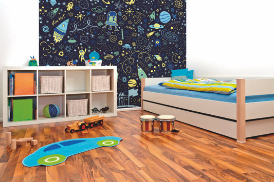 Origin Murals Space Doodle Text Navy Blue 350cm X 280cm
