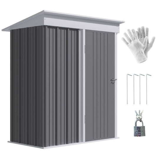 Outdoor Storage Shed, Sliding Door, Sloped Roof 152 x 132 x 188 cm, Grey
