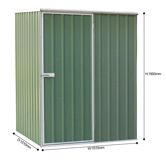 Galvanised Steel Metal Garden/Outdoor/Storage Shed, 5FT x 2.5FT, Pent Style Roof - Green - DG113