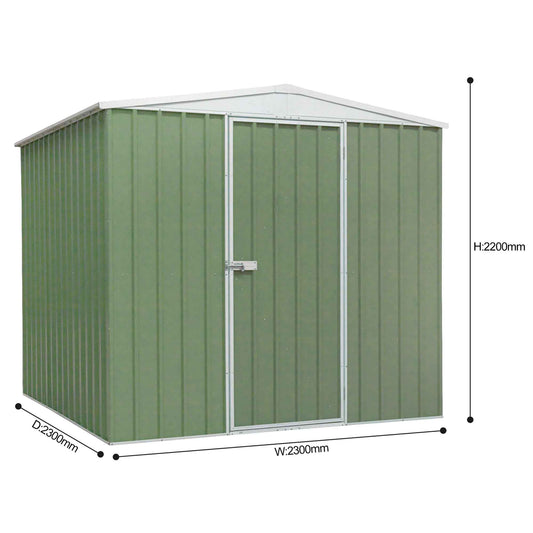 Galvanised Steel Metal Garden/Outdoor/Storage Shed, 7.5FT x 7.5FT, Apex Style Roof - Green - DG115