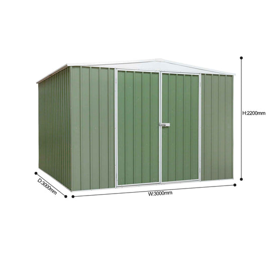 Galvanised Steel Metal Garden/Outdoor/Storage Shed, 10FT x 10FT, Apex Style Roof - Green - DG116