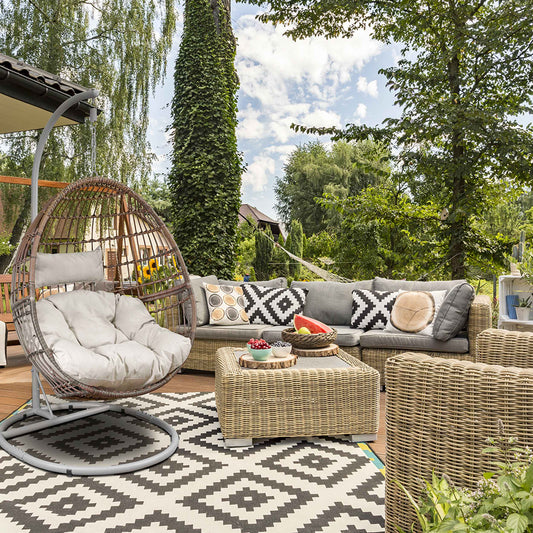 Egg Hanging Double Swing Chair, Wicker Rattan Basket & Steel Frame - DG61