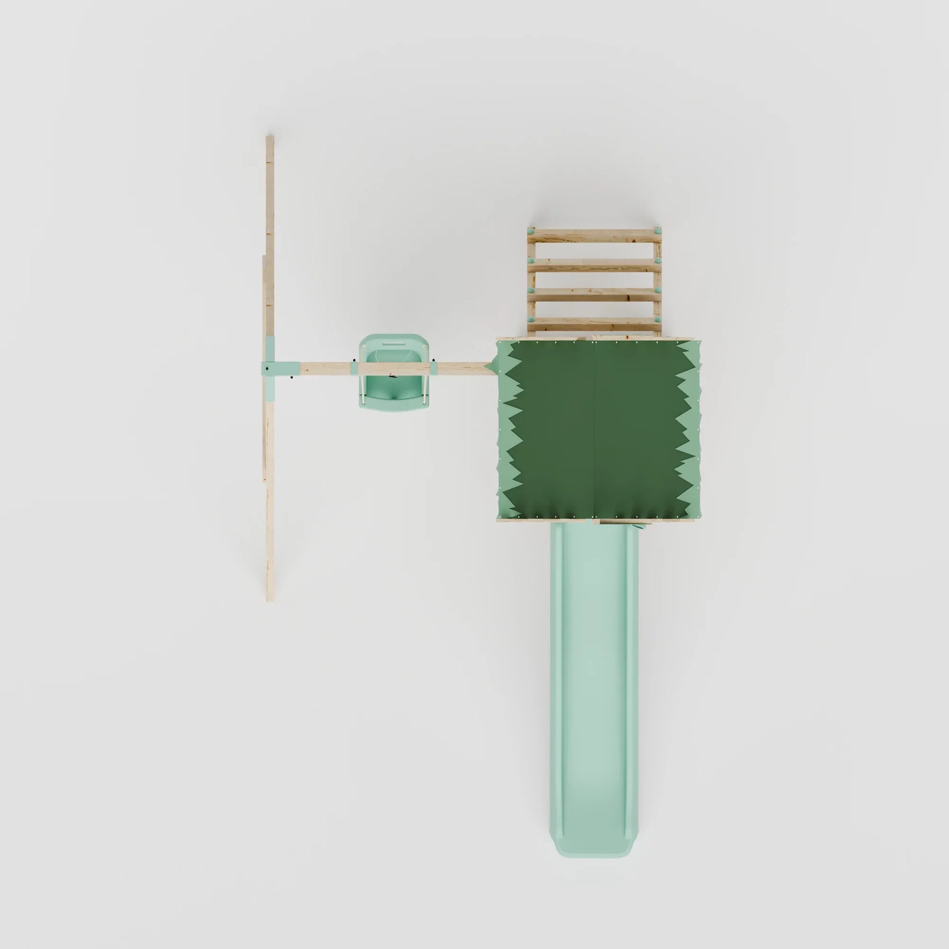 Create a magical outdoor experience for your child with the Climbing Frame With Single Baby Swing - Enchanted Grove II. This designer climbing frame stands out with its charming and natural Scandinavian-inspired look. The neutral-toned wood pairs beautifully with pastel blue accents, resulting in an elegant yet playful addition to any garden.