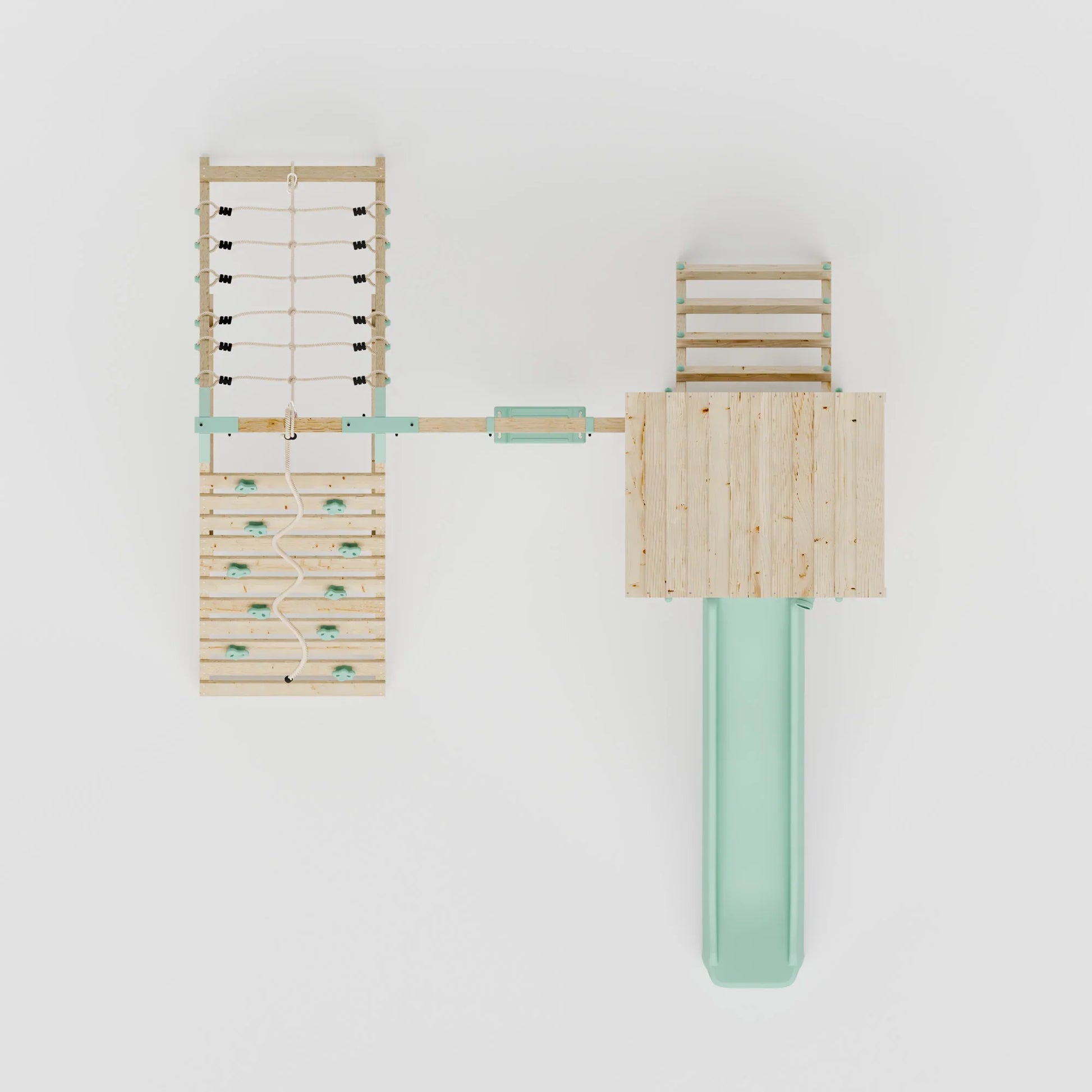 - Sturdy climbing wall with grip-friendly holds and support rope
