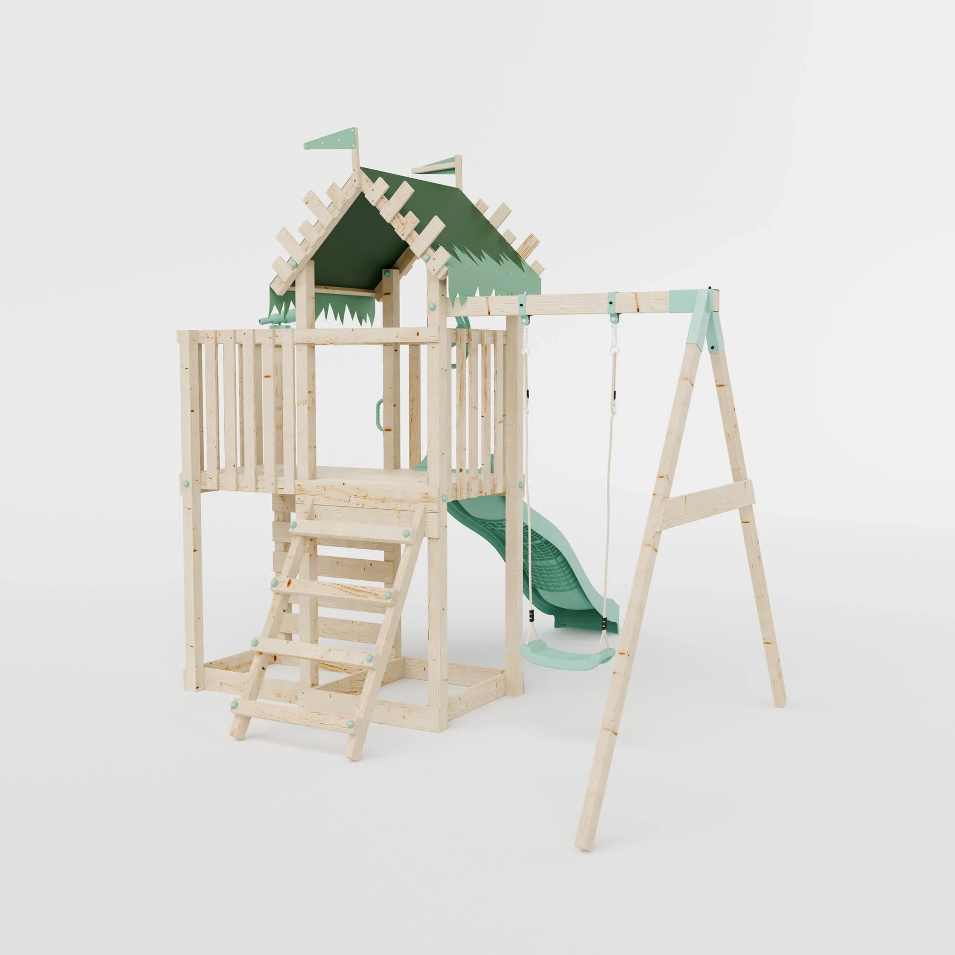 - Pastel blue slide and rustic, single swing for double the enjoyment