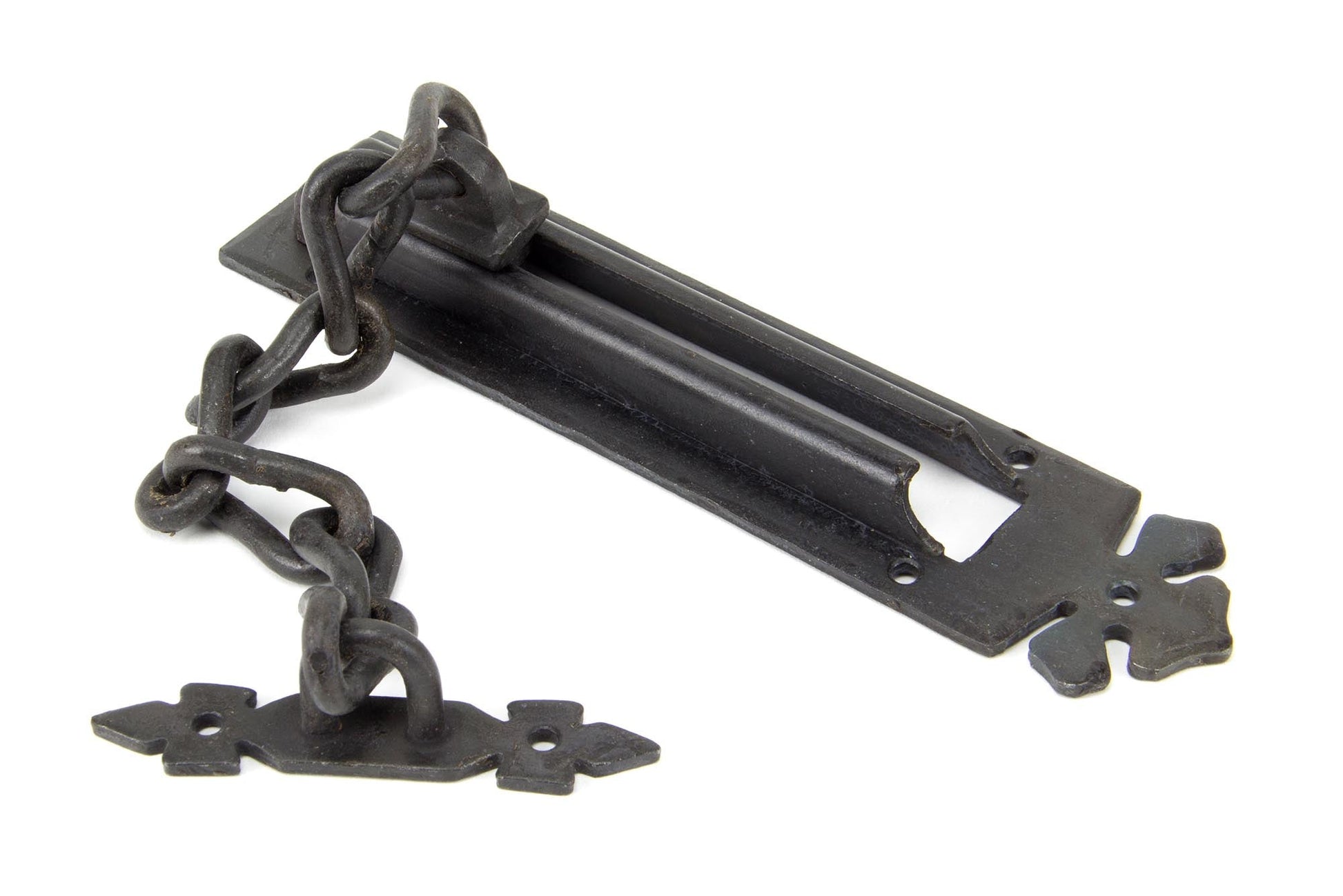 The From The Anvil Door Chain features a handsome blacksmith finish, complementing traditional and modern doors alike. Its sleek, dark chain and matching fixings are visually striking, providing a refined yet sturdy statement at your entrance. The overall look evokes a sense of security and understated elegance, seamlessly integrating with a variety of door styles.