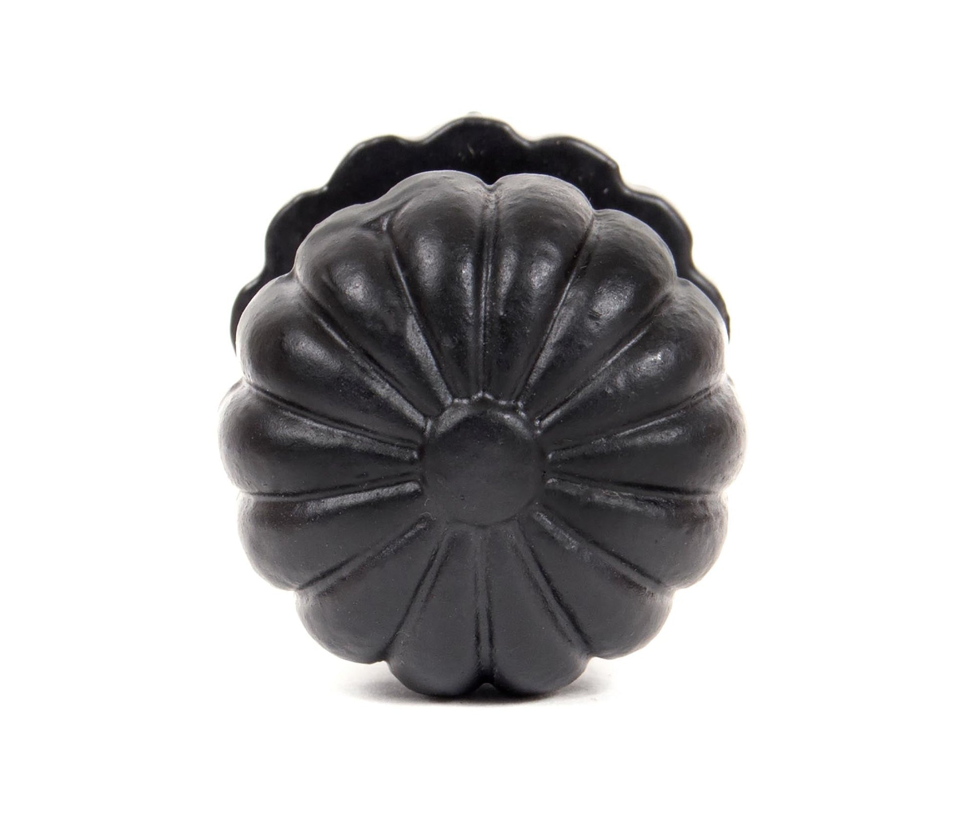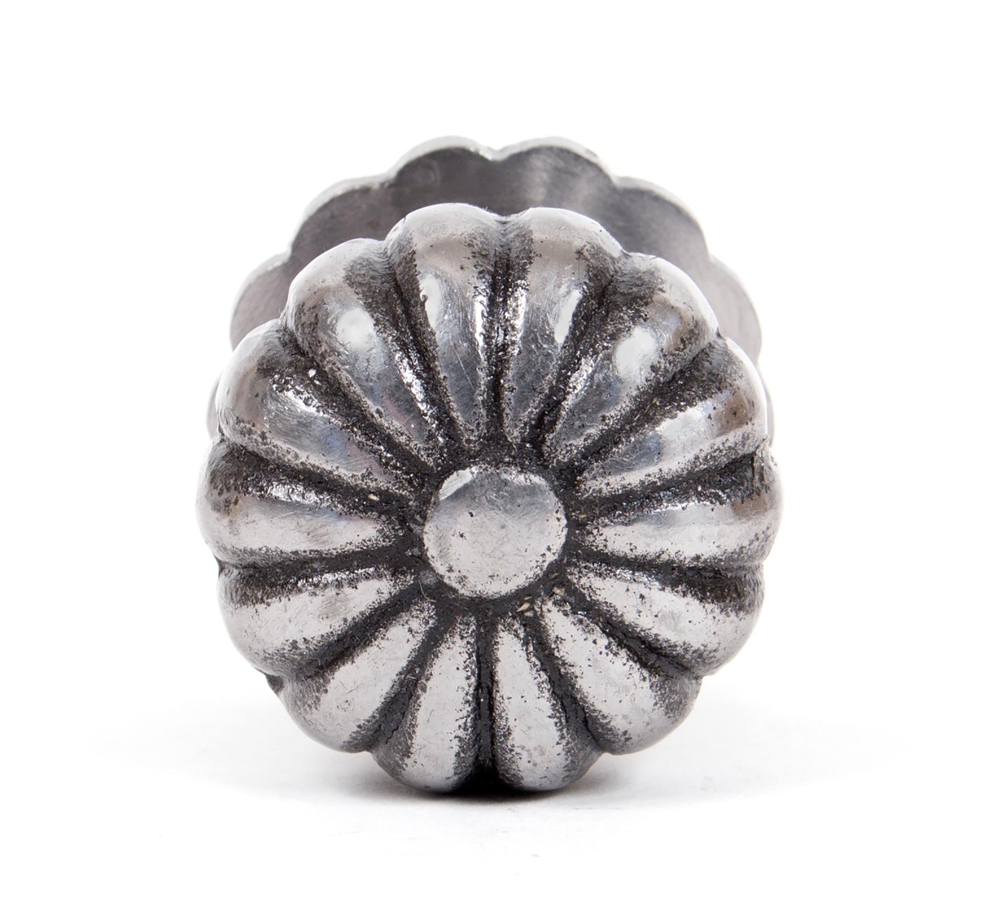 The image reveals a beautifully crafted knob with a striking floral motif, expertly shaped by skilled blacksmiths. Its timeless, elegant look brings a touch of sophistication to any setting, with delicate petal-like contours that radiate charm and finesse across both traditional and modern interiors.