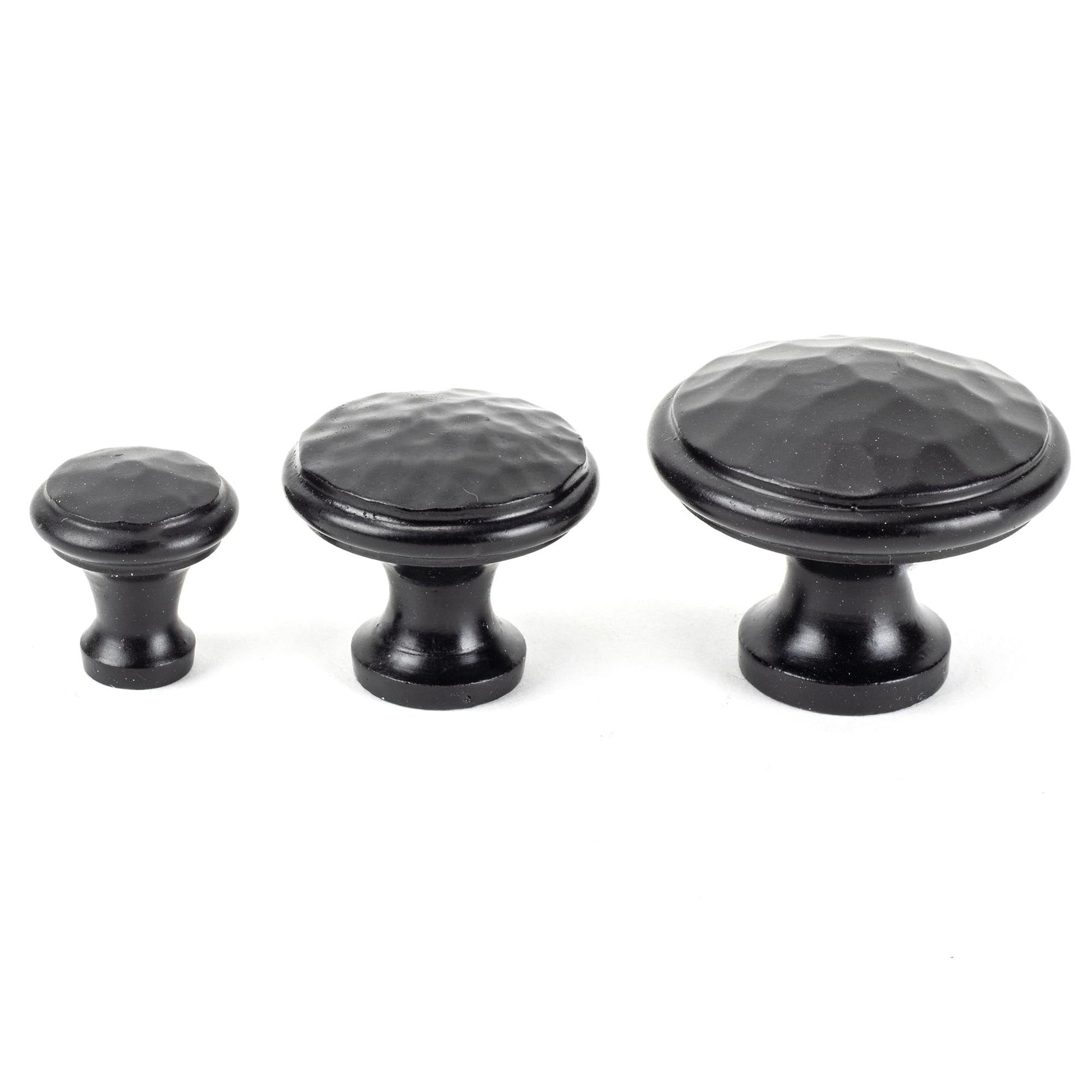 The product image showcases a striking cabinet knob with a uniquely tactile surface, its rugged contours catching the light and revealing the artistry of the blacksmith's hand. Each knob features delicate hammered patterns, with subtle variations that emphasise the hand-forged nature of these characterful accessories. The finish appears deeply textured and charismatic, exuding warmth and a hint of rustic charm that can elevate cabinetry and furniture throughout the home.