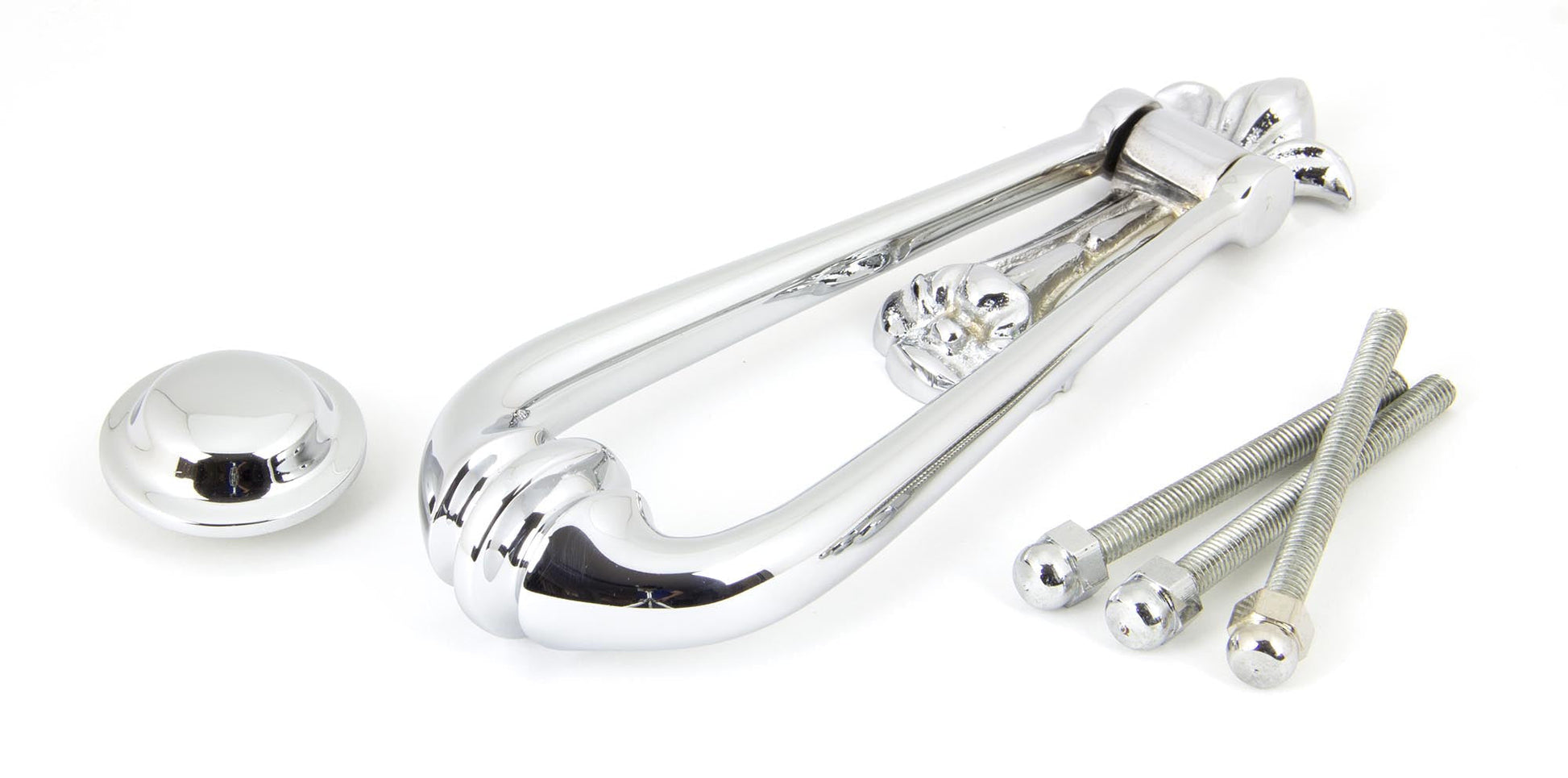 The From The Anvil Loop Door Knocker is a refined piece from a well-known brand celebrated for its craftsmanship, esteemed designer touch, and exceptional quality. This premium door knocker captures attention with its curved loop silhouette, exuding both elegance and timeless appeal. The image showcases a gleaming finish and meticulous detailing, making it a standout feature on any front door. Its classic form sits in harmony with both period properties and contemporary homes alike.