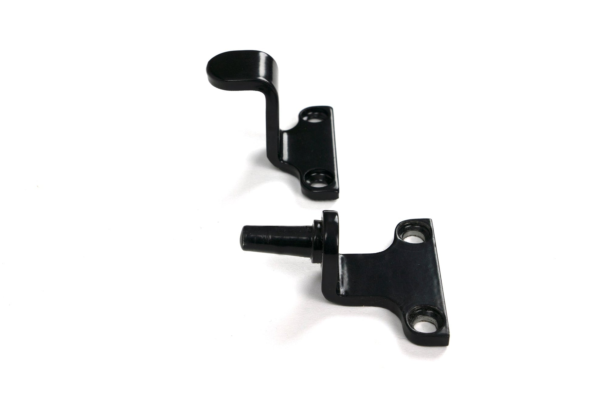 The image presents a beautifully hand-forged window stay with elegant, curved detailing evocative of period ironwork. Its graceful silhouette and detailed craftsmanship capture the rustic charm of eighteenth-century design, adding a touch of heritage to any steel window it adorns.