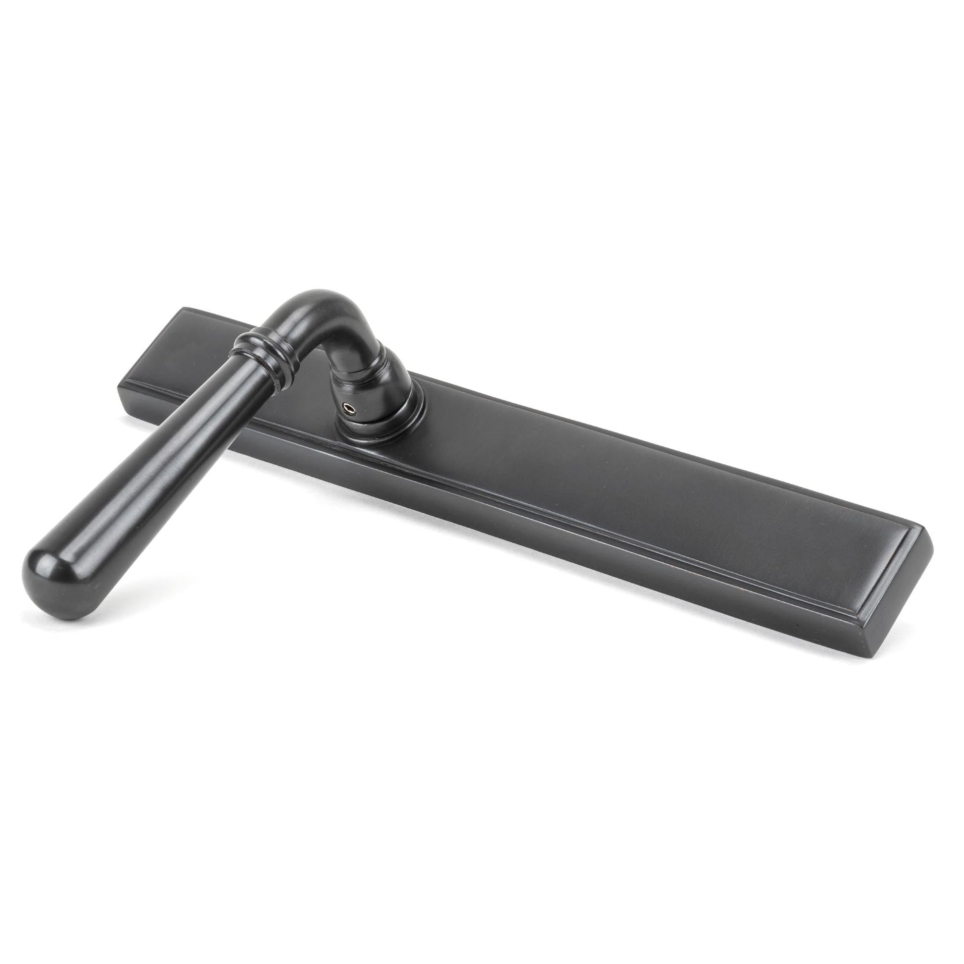 The From The Anvil Newbury Slimline Lever Espag. Latch Set embodies the elegance and durability for which the brand is celebrated. Traditionally hand-forged, this lever handle set features thoughtful engineering, highlighted by its robust double spring mechanism and distinctive boss design. Inspired by classic British ironmongery, it marries beauty with practicality, making it an ideal choice for homeowners seeking both style and substance in their door hardware.