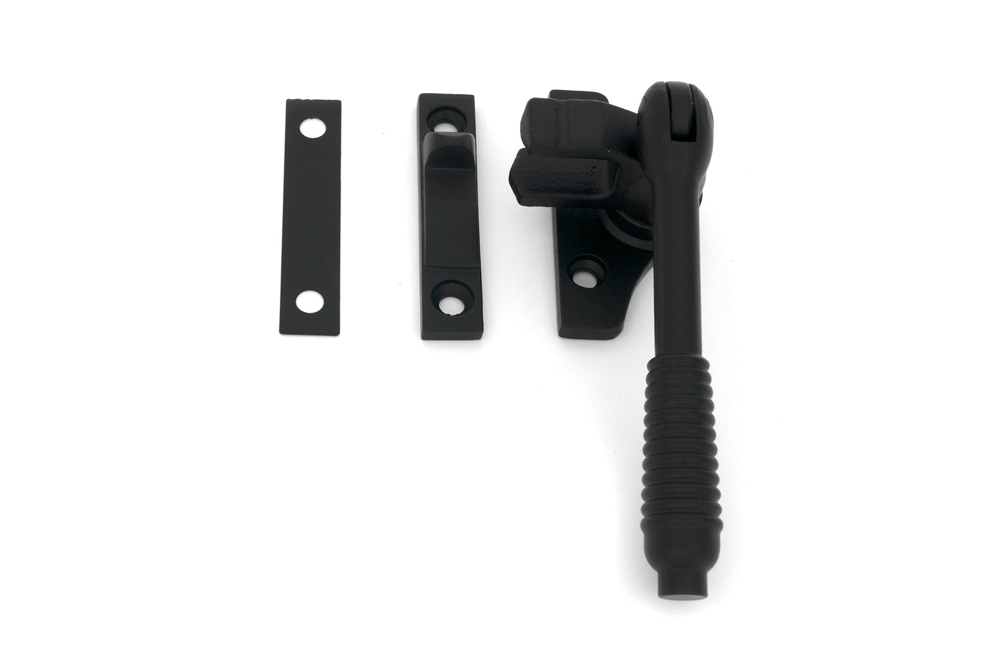 This night-vent fastener is handed to ensure a perfect fit on your steel window, offering both security and aesthetic appeal as part of your home accessories. Choose the From The Anvil Night Vent Locking Reeded Fastener for a seamless blend of sophistication and practicality that enhances the look and security of any window setting.