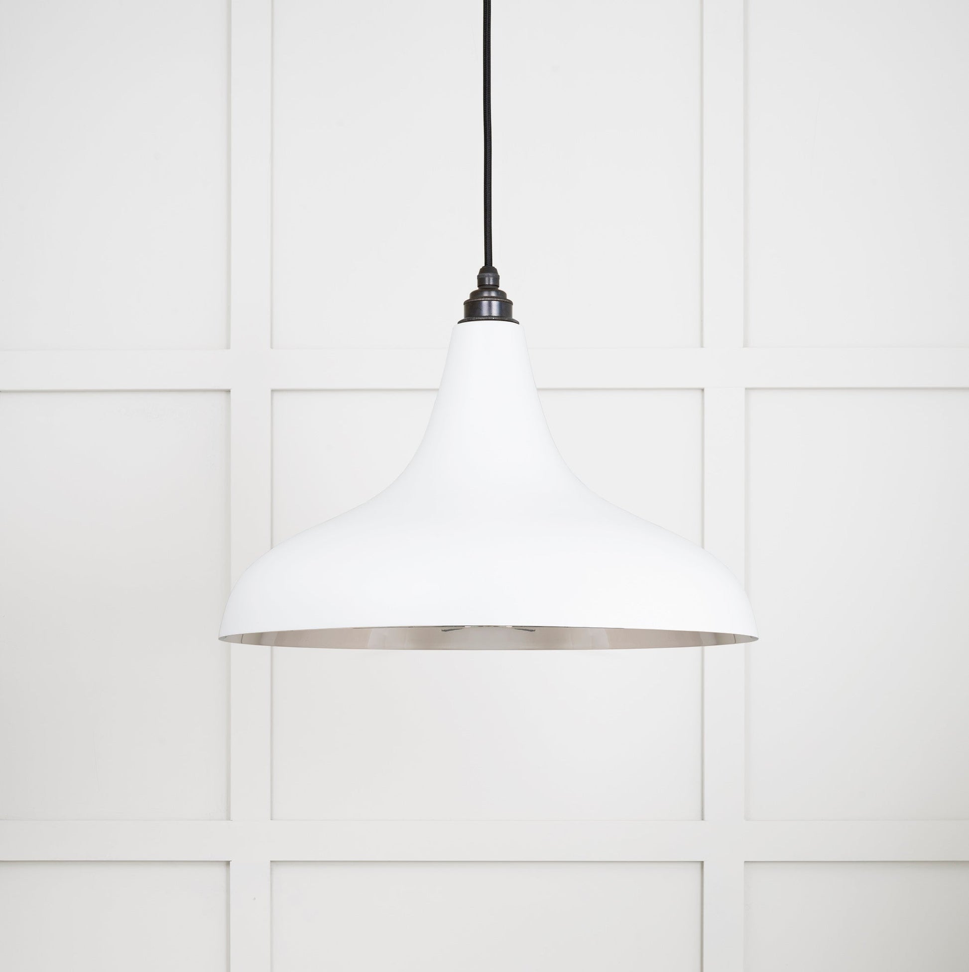 The From The Anvil Smooth Nickel Frankley Pendant blends sleek, contemporary lines with subtle sophistication, as reflected in its distinct design and lustrous finish. This ceiling pendant is highly versatile, making a bold statement whether installed individually or as part of a group. Drawing on From The Anvil’s heritage, this pendant is offered in a variety of colours and finishes, and can also be bespoke to suit your unique taste.