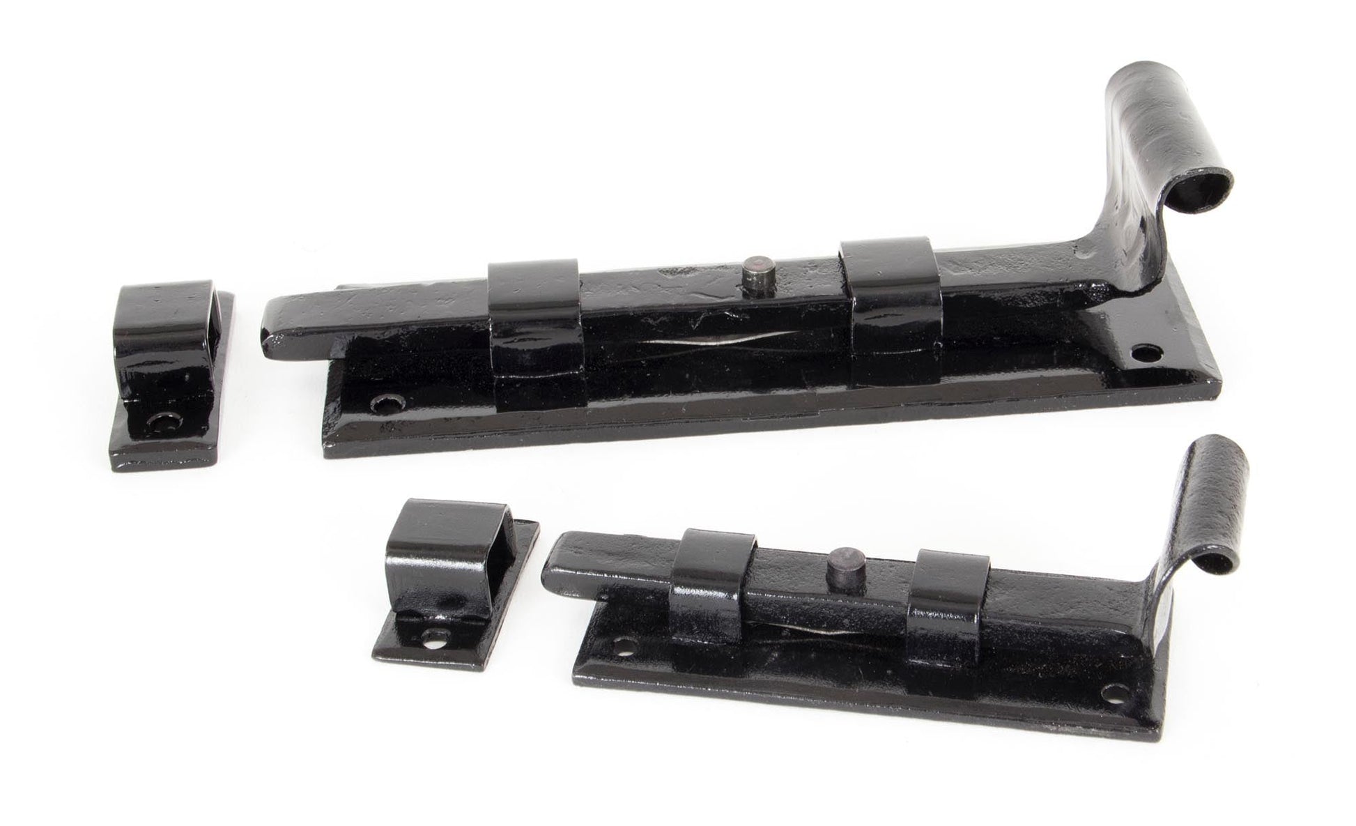 The image captures a classic straight door bolt with a distinctly traditional flair. The elegant hand-forged fishtail end adds an artisanal touch, while the bold lines and authentic finishing embody a sense of heritage. Its sophisticated sheen and streamlined profile make it an eye-catching yet understated staple for any interior or period property, seamlessly complementing both modern and classical decor.