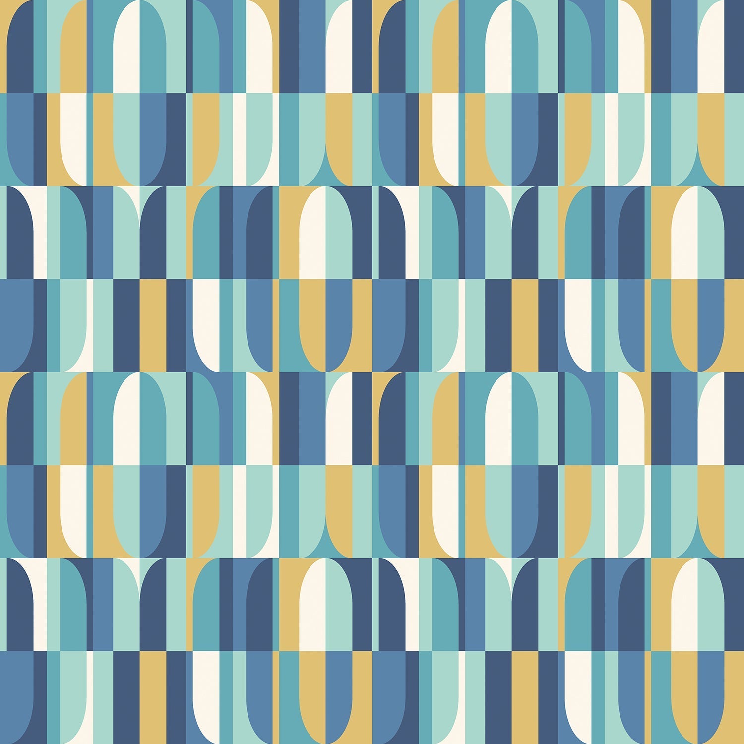 The Hoopla Walls Building Blocks Indigo Gold wallpaper brings together Hoopla Walls' celebrated expertise with a bold yet versatile design. Designed with both contemporary and classic interiors in mind, the tall, lozenge shapes are arranged in a rhythmic, small-scale pattern that is easy to incorporate into any space—from children’s rooms to sophisticated lounge areas or serene bedrooms. Showcasing a vibrant all-over graphic design, this statement wallpaper effortlessly uplifts and transforms the look of your home.