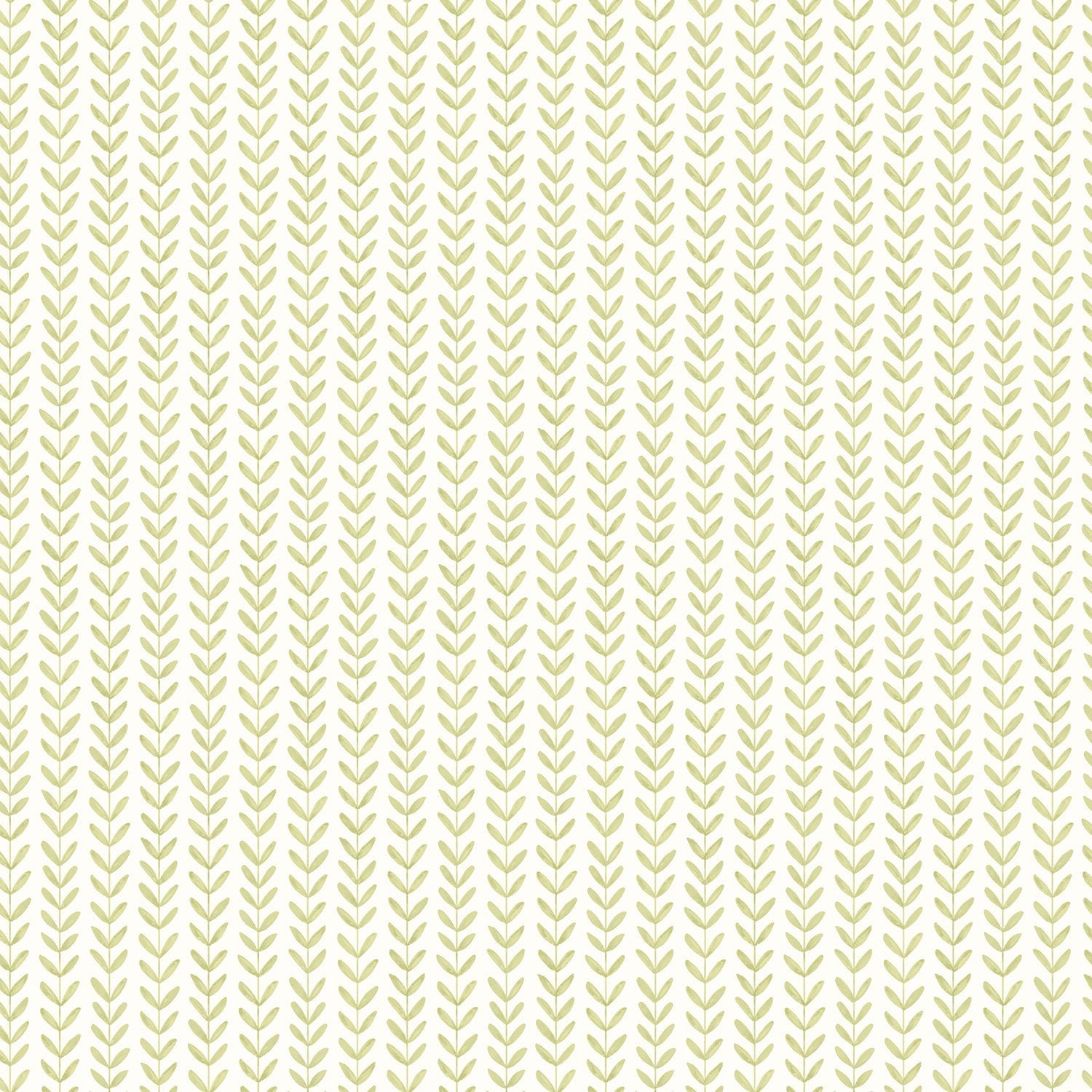 The image reveals a soothing green backdrop, enhanced by a harmonious arrangement of petite leaf motifs. These delicate leaves, meandering in soft stripes, evoke a sense of simple sophistication, adding a hint of nature-inspired tranquillity to your walls. The gentle palette and intricate pattern produce an inviting atmosphere, suitable for both modern and classic interiors.