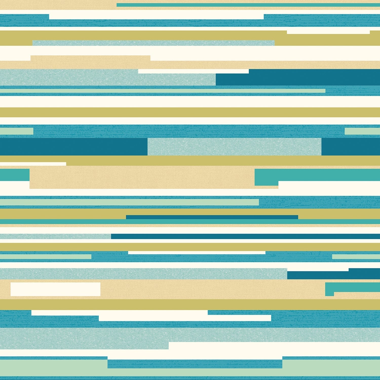 - Designer wallpaper with bold, architectural horizontal stripes in teal and blue
