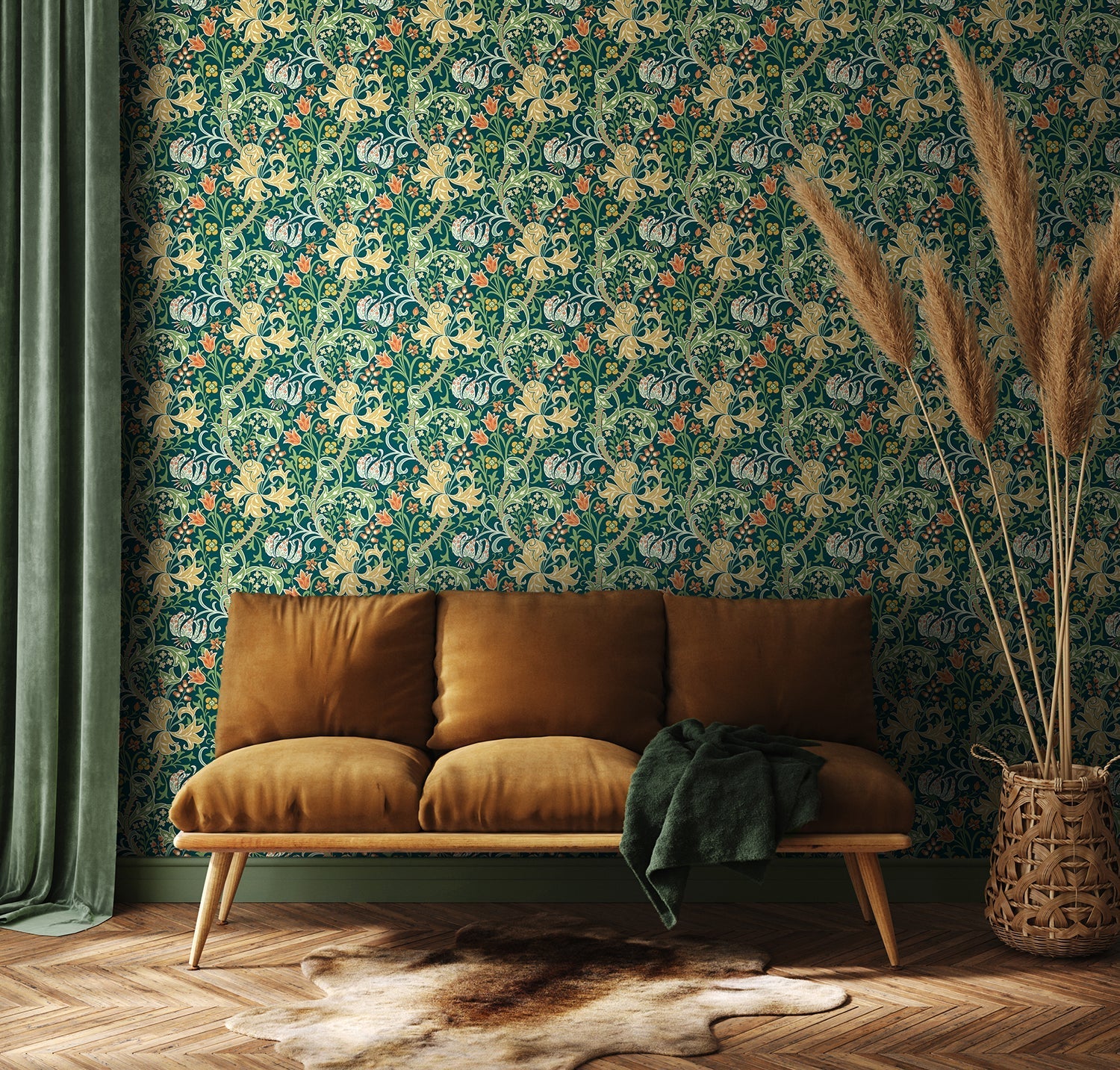 The Hoopla Walls Lily Ogee Emerald Green wallpaper delivers a bold and confident statement for any living space. Taking inspiration from John Dearle’s iconic patterns for William Morris, this interpretation breathes new life into your kitchen, lounge, or bedroom, effortlessly blending tradition with contemporary design. Rich in detail, it adds depth and vibrancy, producing an instant focal point in your decor.