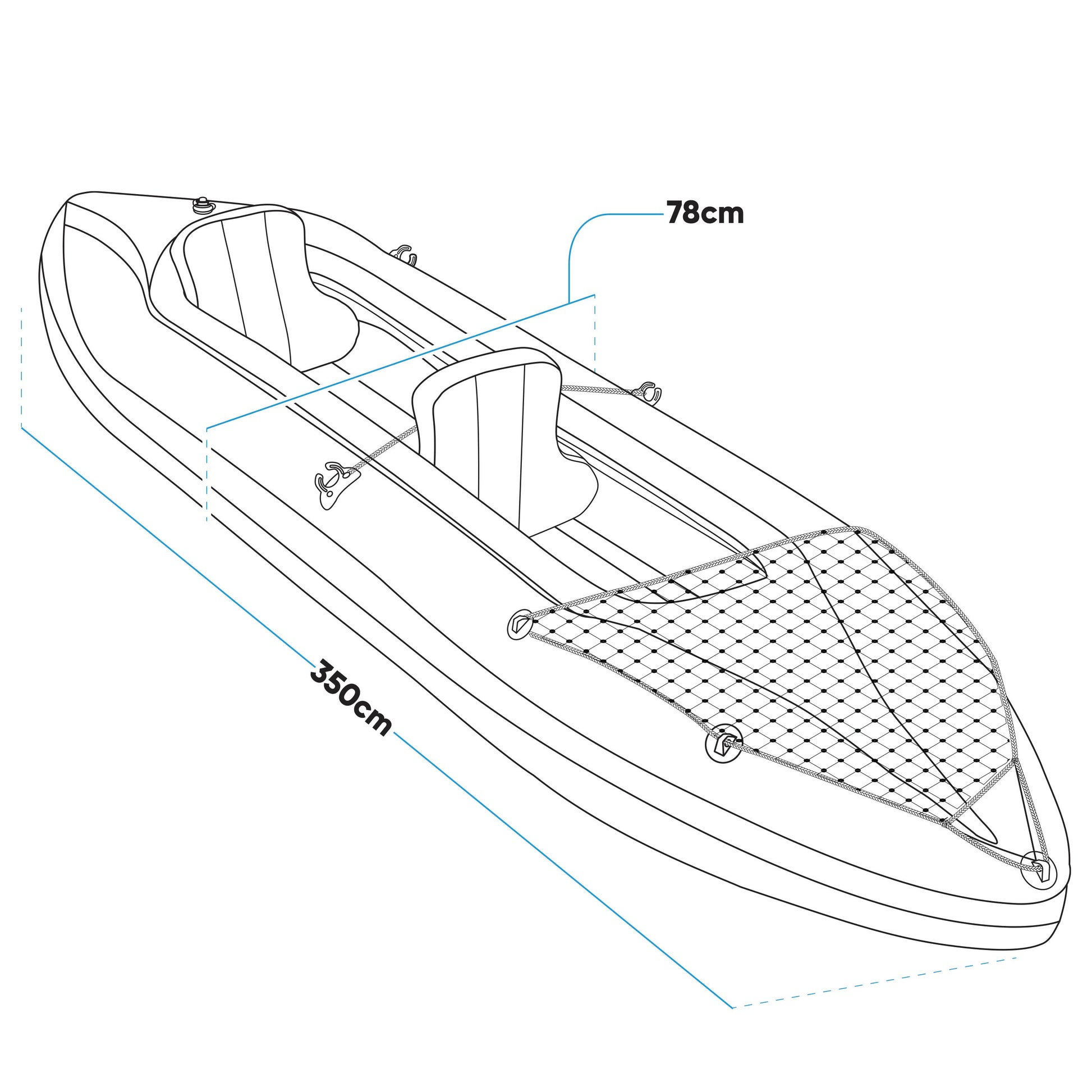 - Generous Dimensions - The kayak measures 350cm in length, 78cm in width, and 52cm in height, offering a spacious and comfortable platform for both paddlers. The thoughtful design enhances stability and tracking, making it suitable for various water conditions.