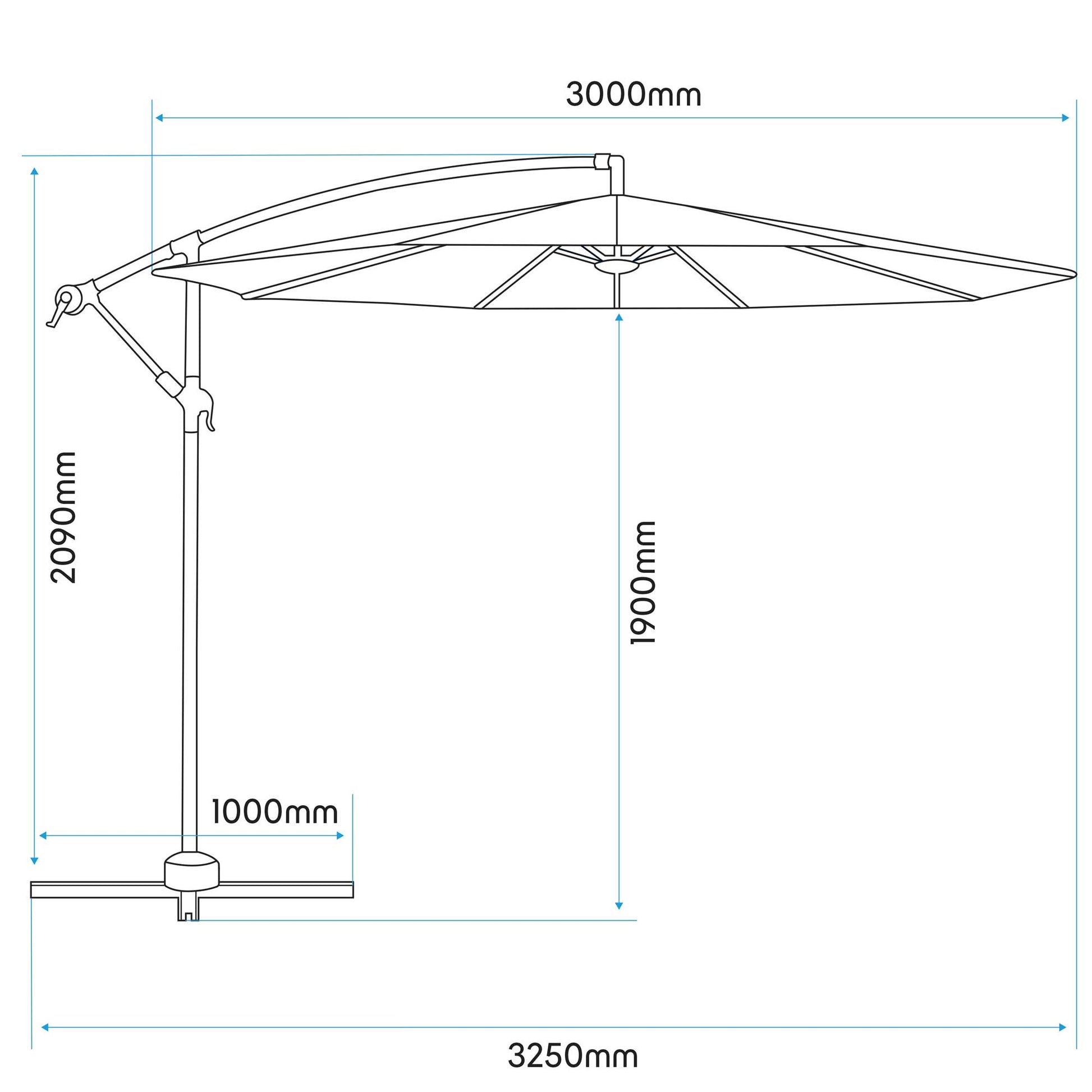 - Ø3m Diameter provides full shade for all garden, patio and other outdoor settings.