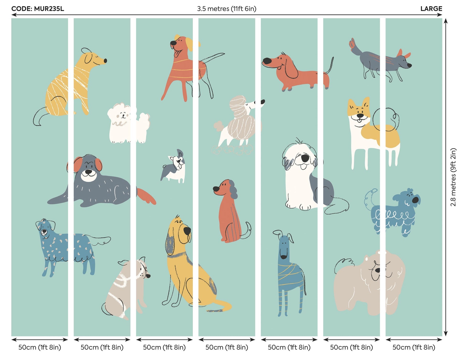 Transform your home with the SEO keyword wallpaper from Origin Murals and let the Happy Dogs Teal Blue design capture hearts and spark smiles. This mural stands out as a cheerful statement piece, creating a unique focal point brimming with optimism and charm.