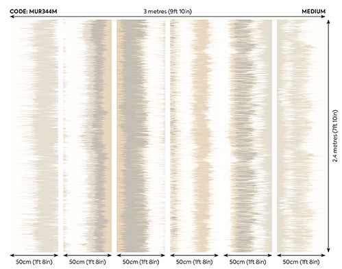 The mural features a captivating arrangement, with vertical stripes in a harmonious blend of lighter and darker stone grey hues. Each stripe melts seamlessly into the next, creating an eye-catching sense of depth, texture, and gentle movement across the wall. The background radiates an effortlessly modern aesthetic, instantly refreshing your interior and providing a stylish focal point without overpowering the room’s ambience.