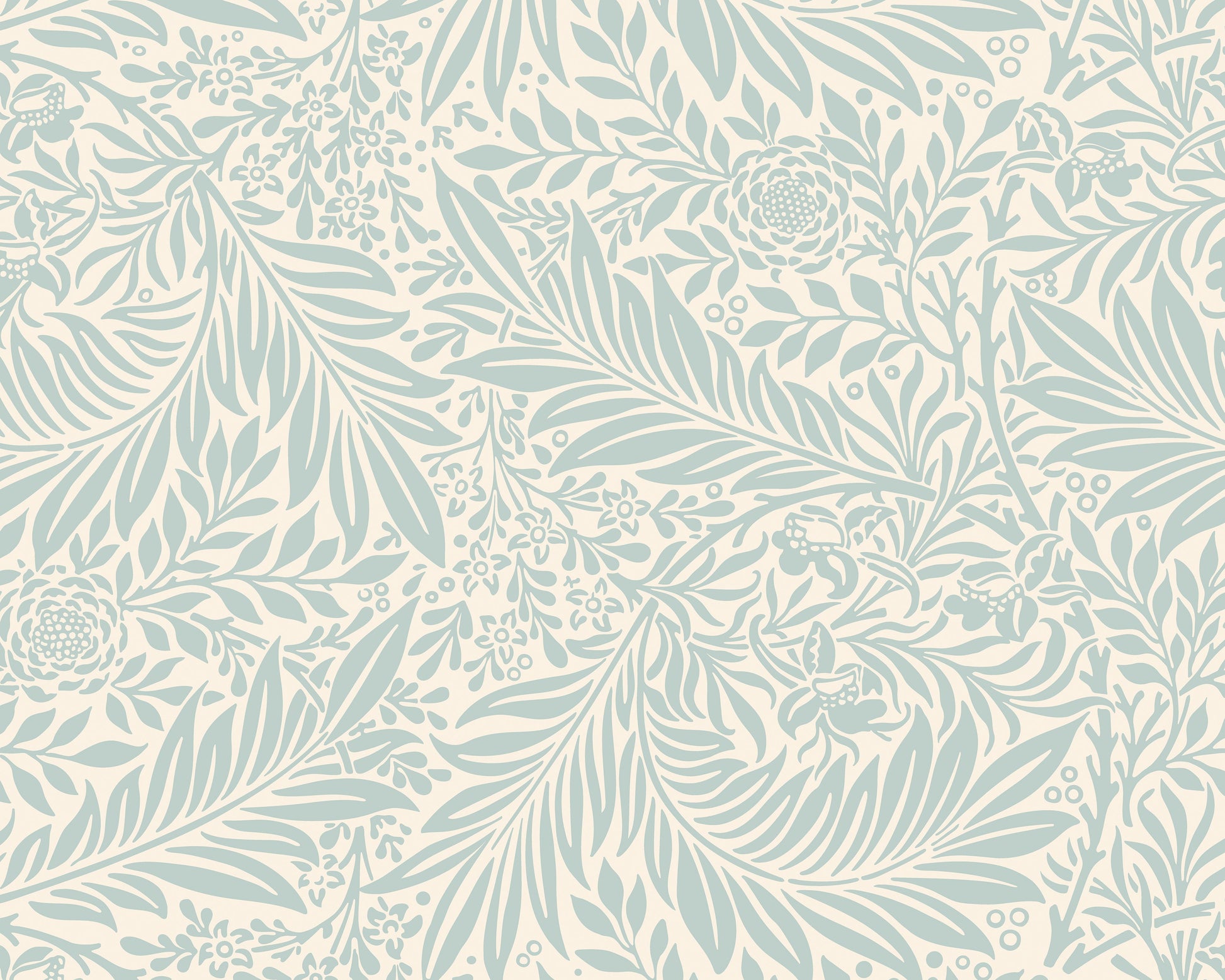 The image showcases a serene, botanical landscape, where delicate flowers mingle with floating leaves, graceful ferns, and subtle dotted accents. The two-toned motif exudes tranquillity, with a harmonious duck egg palette that embodies understated elegance. Each detail contributes to a calm and inviting atmosphere, perfect for refreshing your living space.