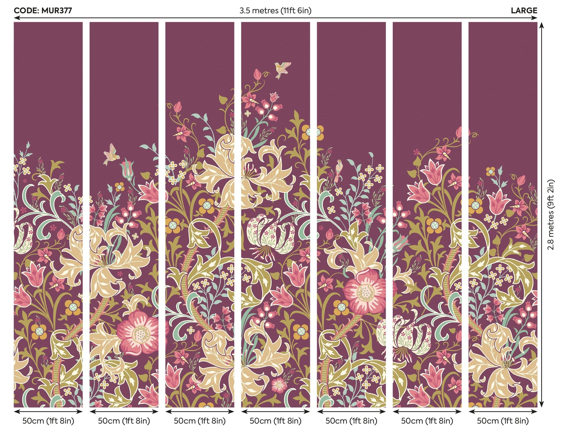 The Origin Murals Trailing Lily Aubergine mural draws inspiration from John Dearle’s celebrated work for William Morris, blending traditional influences with a bold, modern twist. This wallpaper mural is ideal for those seeking a large-scale feature that brings both historical charm and contemporary style to a room. Its vivid artistry makes it perfect for feature walls in lounges, bedrooms, or creative workspaces.