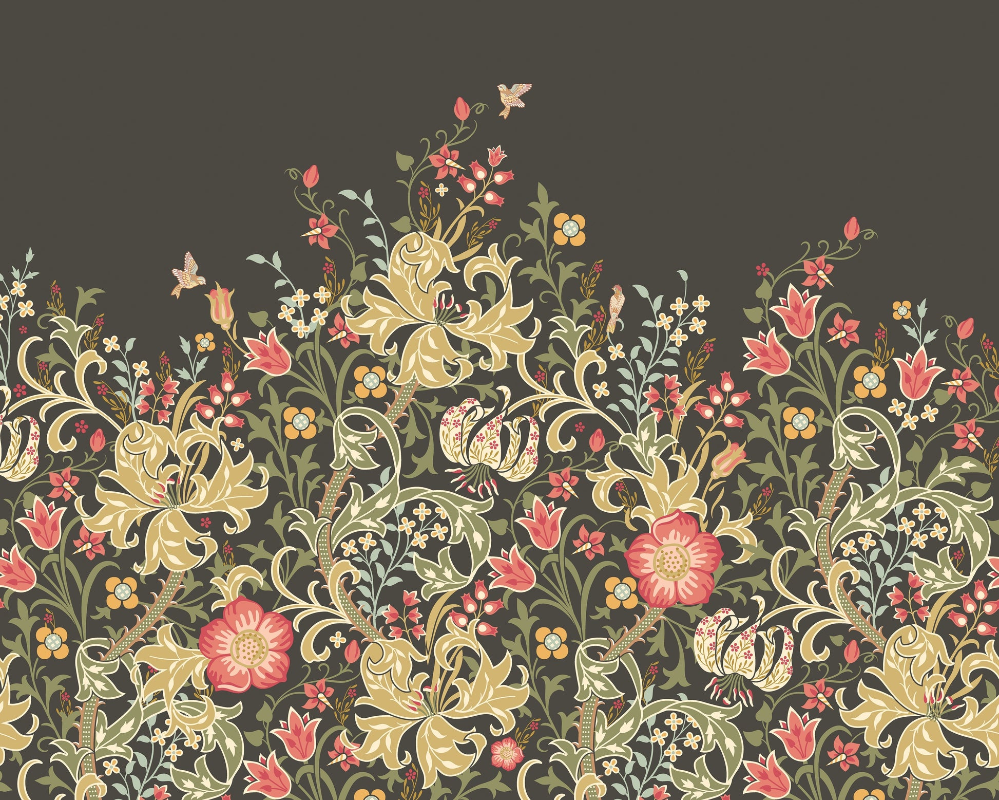 The Origin Murals Trailing Lily Midnight wallpaper by Origin Murals masterfully reimagines John Dearle’s iconic motifs for William Morris, blending historic inspiration with contemporary flair. The dramatic lily design lends an inviting yet refined ambiance, perfect for feature walls or creative decorating projects.