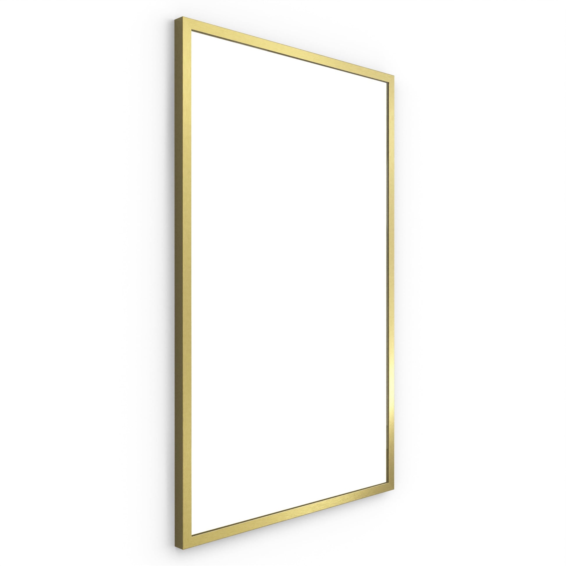 In the image, the mirror exudes refinement and modern allure. The smooth frame showcases a rich brushed brass tone, radiating warmth that delicately complements its bold geometric lines. The reflection is crystal clear, capturing a sense of space and light, making any setting feel more open and inviting. The elegant metallic band frames the glass with precision, adding both substance and flair without overwhelming the room’s aesthetic.
