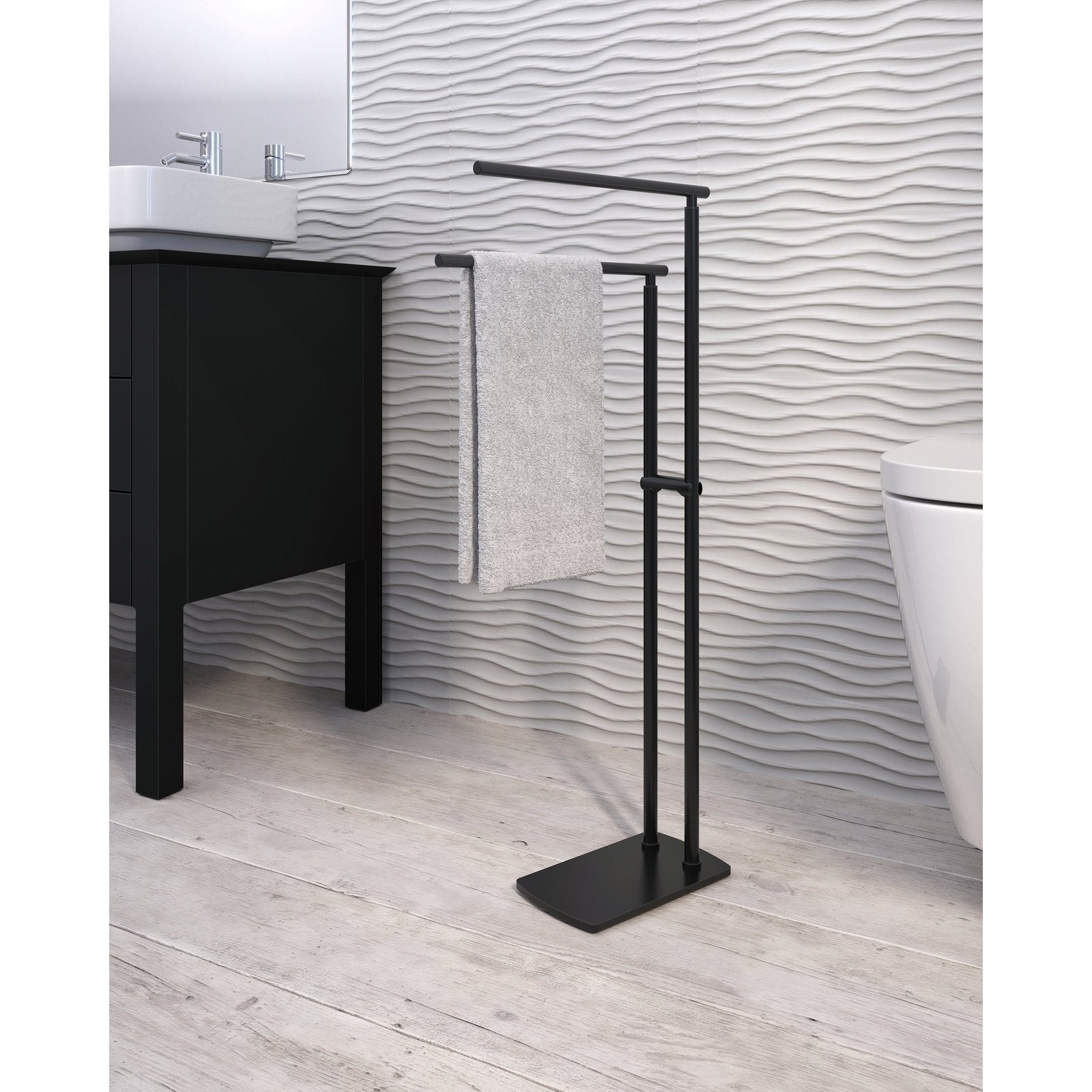 The Origins Living Gedy Florida Towel Stand With 2 Fixed Arms Matt Black is expertly crafted to offer a stylish solution for towel storage without the need for wall mounting. Designed with a strong architectural presence, the stand sits confidently within your bathroom, making it as functional as it is beautiful. Its matt black finish provides a modern edge while retaining a sense of classic sophistication, perfectly suited to both minimalist and boutique hotel-inspired interiors.