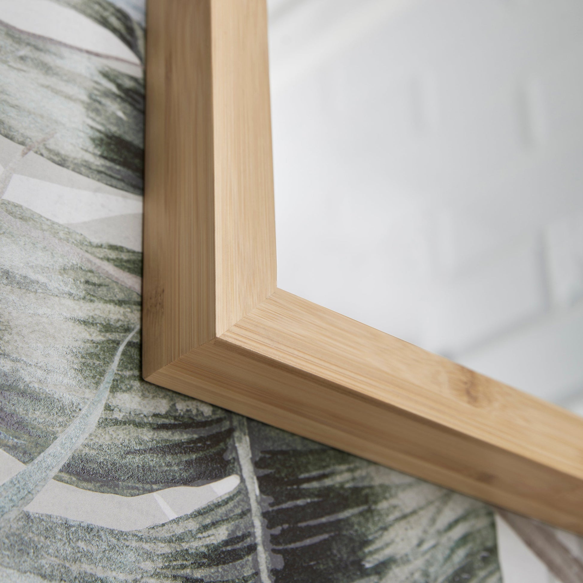 In the product image, the mirror’s rectangle form is accentuated by the gently rounded bamboo edges, which contrast beautifully with the clarity of the reflective glass. The light wood frame creates a soothing, modern vibe that fits seamlessly with both minimalist and Scandi-inspired rooms, as well as more traditional setups.