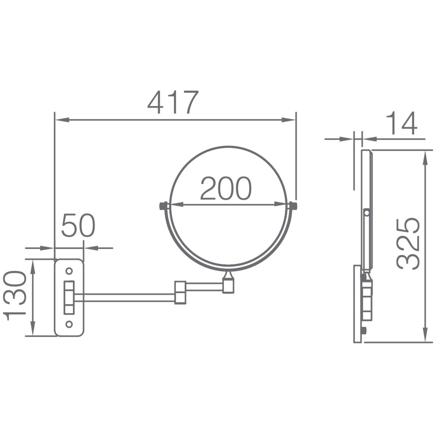 This striking round mirror boasts a sophisticated, highly reflective gloss chrome finish, exuding a modern touch which seamlessly complements contemporary bathrooms. The sleek silhouette features a smartly designed arm allowing the mirror to extend and retract smoothly, whilst the reflective surface remains crystal clear. Whether positioned close to the wall or extended outwards, this mirror becomes an immediate focal point, catching the light beautifully with each angle.