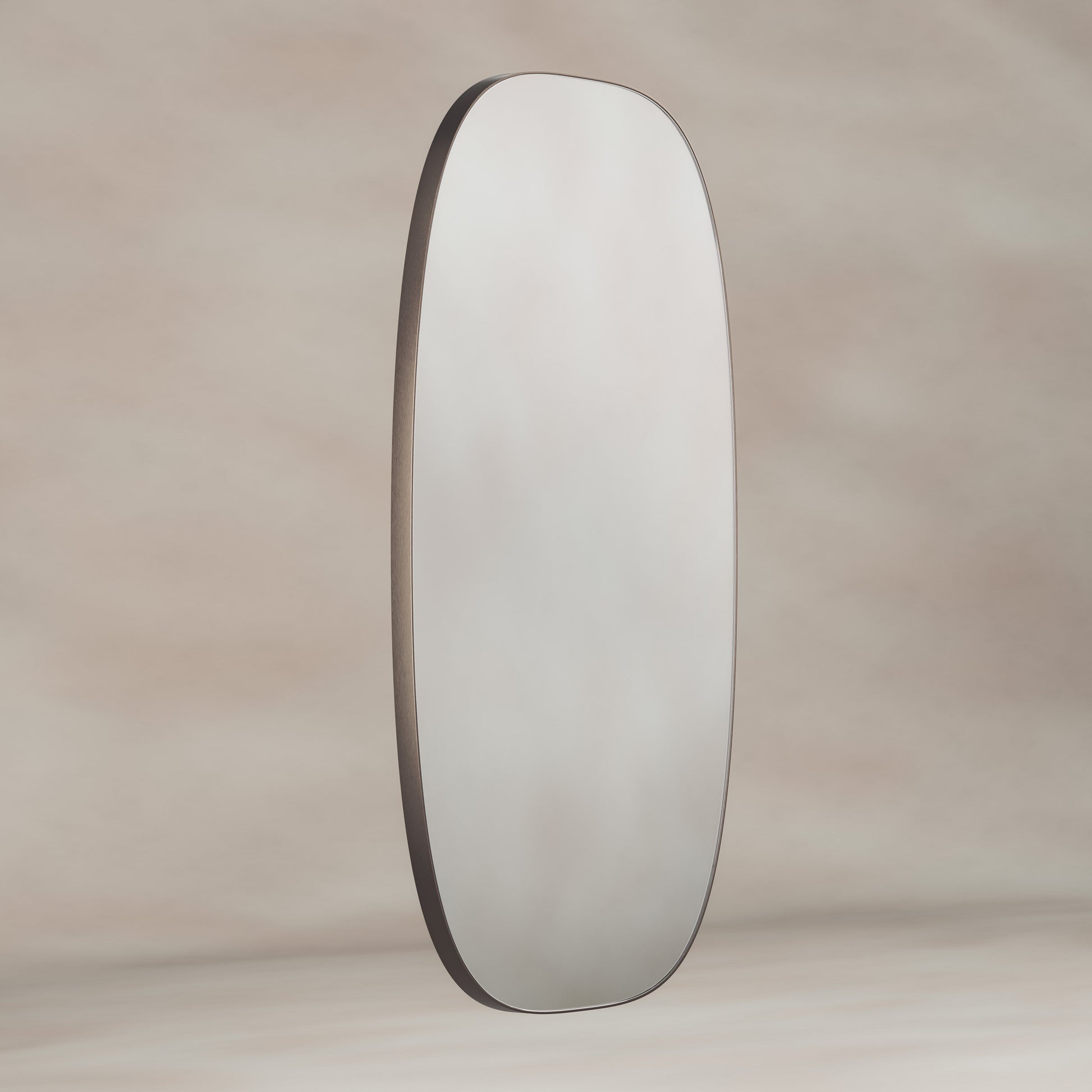 In the image, the Oslo Barrel Mirror exudes sophistication. The sleek, uniquely curved silhouette immediately draws the eye, while the warm brushed bronze frame catches the light, giving off a gentle, inviting glow. Its softly rounded barrel shape sets it apart from traditional mirrors and beautifully complements both minimalist and eclectic décors, making it a versatile choice for anyone with an eye for distinctive interiors.