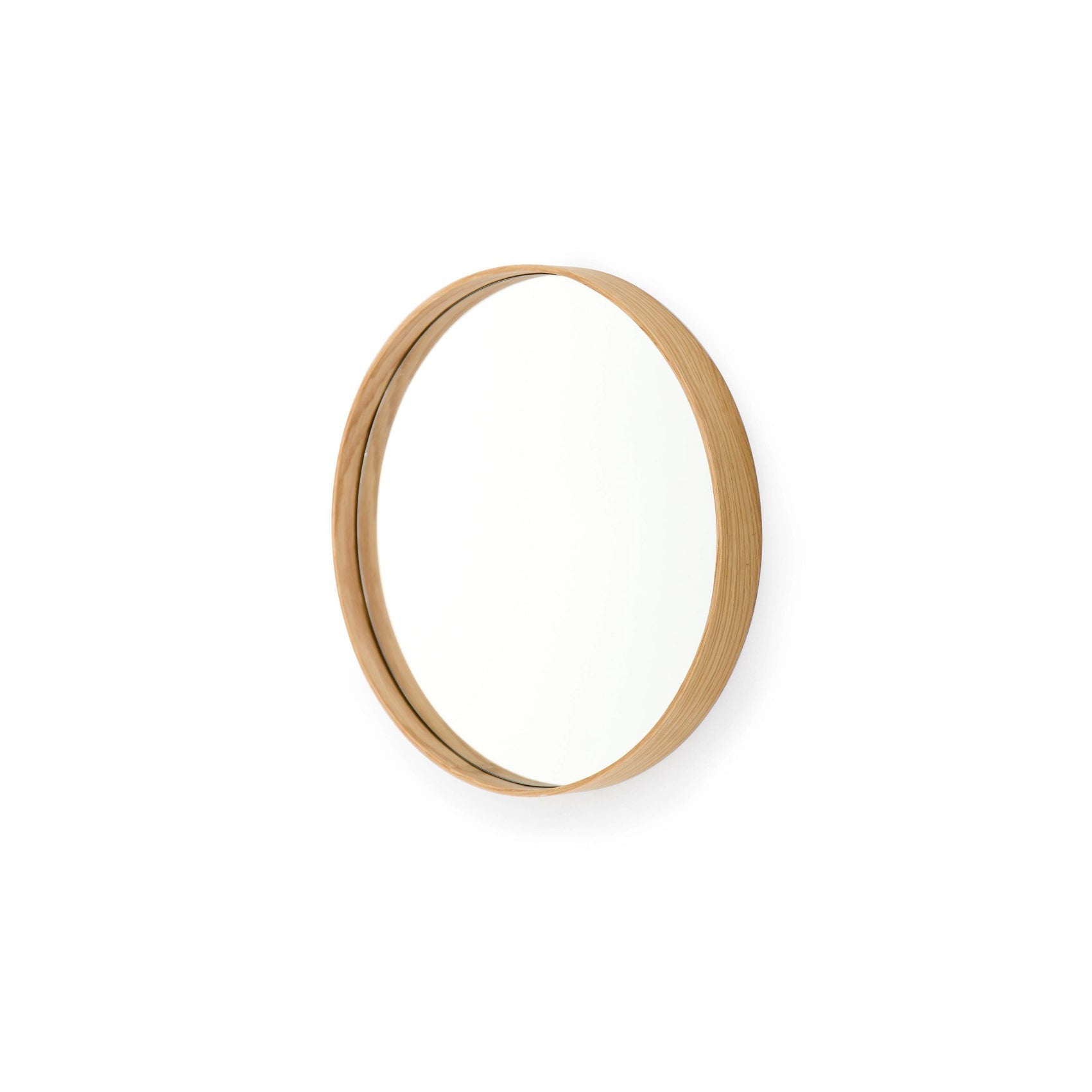 The Wireworks Wall Mirror Glance 310 Oak is from a well-known designer brand celebrated for its commitment to high quality. The image showcases a striking, circular wall mirror with a sleek, polished edge. The mirror’s subtle, contemporary design captures attention with its refined oak frame, which is smooth and seamless, while its deep side profile adds a sense of depth to the overall aesthetic. Mounted on a clean wall, the compact, ‘porthole’ shape brings a smart, modern touch to any hallway, bathroom, or small room.